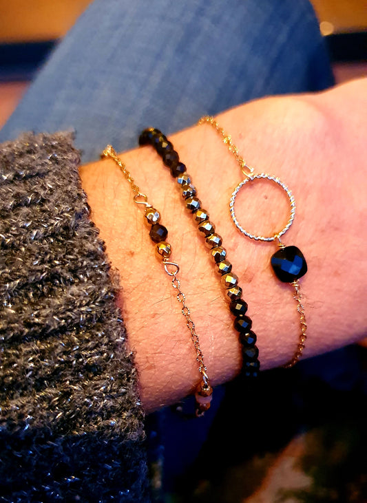 Bracelets Perles en hematite et pierres semi-precieuses naturelles, bracelets perlés
