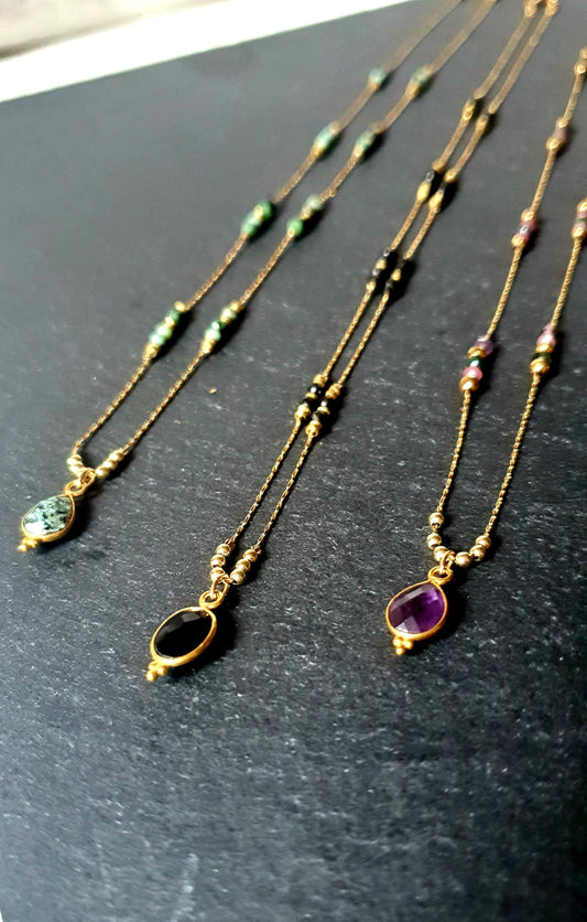 Collier chaîne plaquée or et pierres naturelles semi-précieuses tourmaline