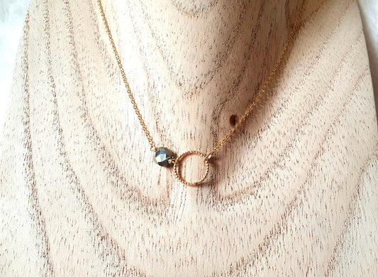 Collier chaîne plaquée or et pierres naturelles semi-précieuses Pyrite
